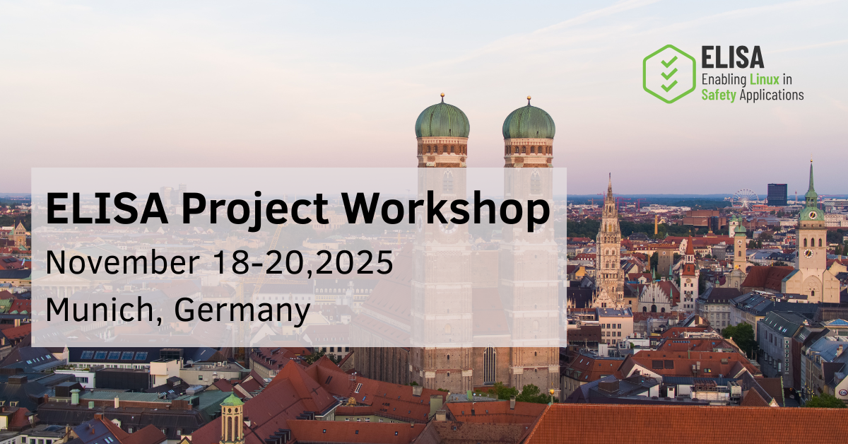 The ELISA Project hosts in-person workshops on a regular basis to gather the project members, contributors, and other partners in the ecosystem to further collaboration, accelerate project progress, and plan for future goals. The next workshop will be co-hosted with Red Hat on November 18-20 in Munich. We strongly encourage in-person participation for the best collaboration; a virtual component may be added if there is sufficient interest.